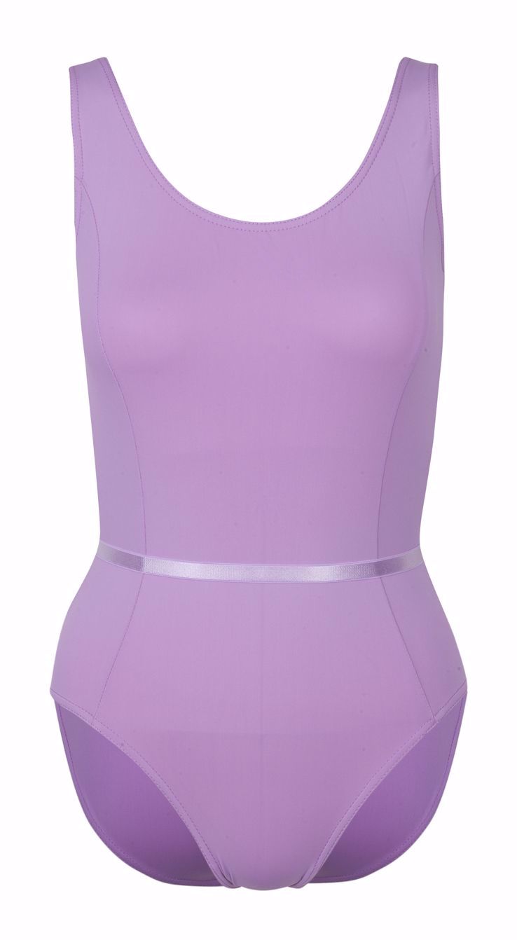 Sleeveless leotard with front princess seams and matching colour coordinated belt. Bralet from size 2 upwards.